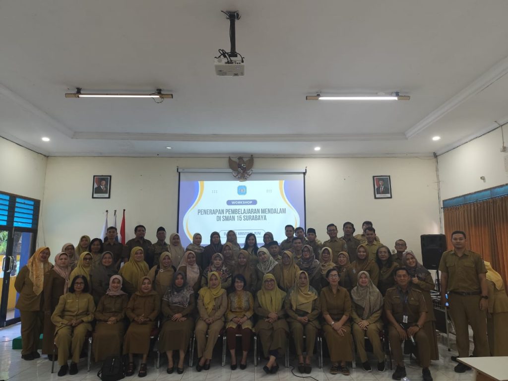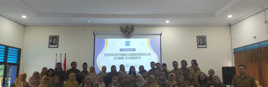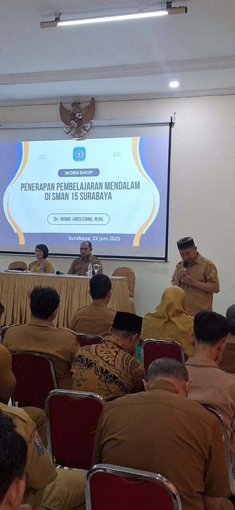 SMA Negeri 15 Surabaya menyelenggarakan Workshop “Penerapan Pembelajaran Mendalam” pada Senin, 23 Juni 2025, sebagai bagian dari upaya peningkatan kualitas pembelajaran dan penguatan kompetensi pendidik. Kegiatan ini diikuti oleh seluruh guru dan tenaga kependidikan SMAN 15 Surabaya dengan penuh antusias.